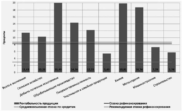 Рис. 1. Показатели доходности операций в производственной сфере в сравнении со ставкой, %(Источник: Росстат, 2012 г.)