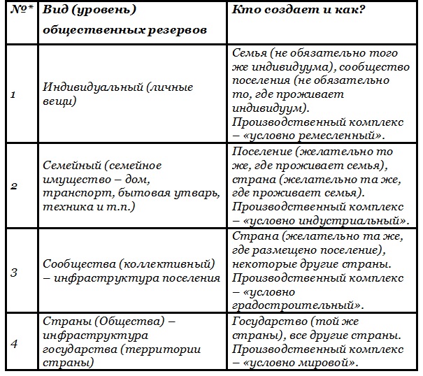 «Схематично схема создания общественных резервов представлена в таблице 2.