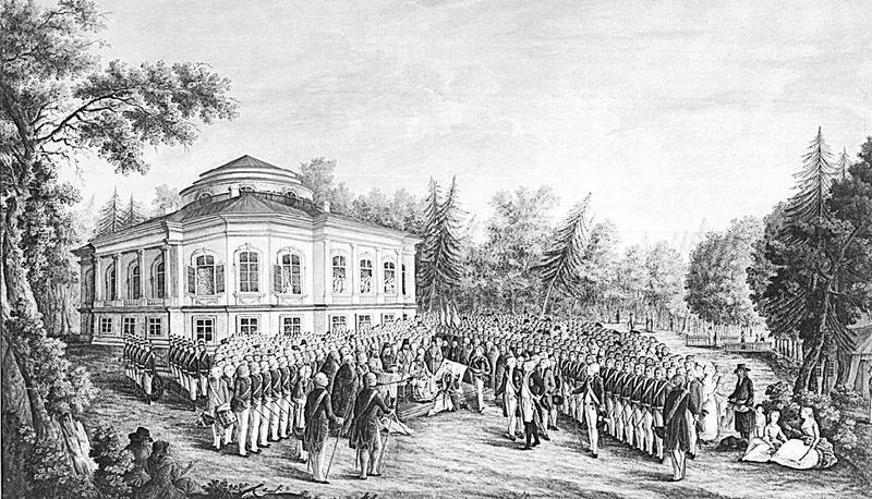 Вручение воинского знамени на Петровском острове. 1793 г.