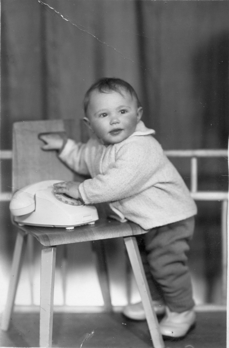 Один год и три месяца. На снимке розовощёкий бутуз вцепился в диск телефона. Матушка рассказывала: привела в фотографию, а там этот телефон. Я как его увидел, так забыл про все на свете. Фотограф и так меня звал, и эдак, чтобы на камеру обернулся… Всё без толку. Только когда матушка несколько раз пальцами щёлкнула, я обернулся на знакомый звук, хохотнул и тут же опять в телефон уткнулся. Фотограф момент чуток прозевал и на снимке осталась лишь тень улыбки.
