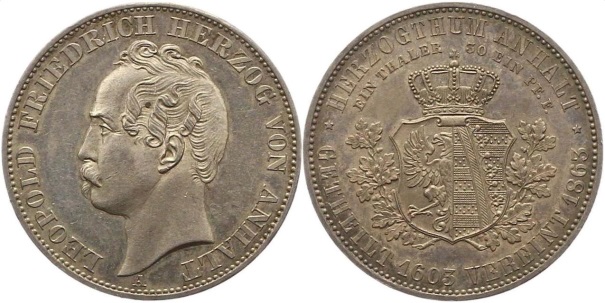Герцогство Анхальт-Десау представлено тремя типами монетами, отчеканенными в период правления герцога Леопольда IV Фридриха (1817-1871 г.г. ).