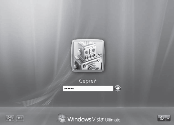 После этого система поблагодарит вас за выполненные настройки. Вам останется нажать кнопку Пуск для запуска тестирования производительности системы. После его окончания появится экран входа в систему (рис. 1.7), где вам предстоит ввести пароль учетной записи, указанный в первом окне создания учетной записи (см. рис. 1.5), и нажать клавишу Enter (в дальнейшем экран входа будет появляться каждый раз при входе в систему). Дождитесь загрузки Рабочего стола, которая завершится появлением окна Центр начальной настройки (рис. 1.8).