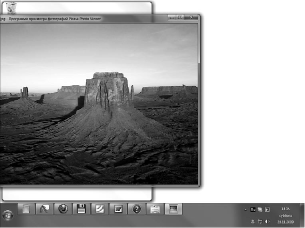 Еще одна приятная особенность стиля Windows Aero – наличие эскизов окон для кнопок запущенных приложений на Панели задач. Наведите указатель мыши на любую из них – и всплывающий эскиз сразу же проинформирует вас о содержимом окна (рис. 2.5).