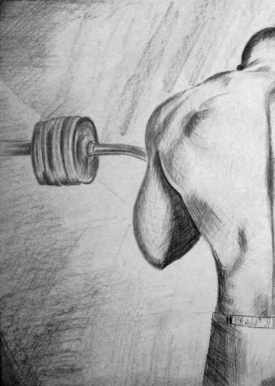 лежал под штангой и упорно давил ее от груди, пропитывая майку