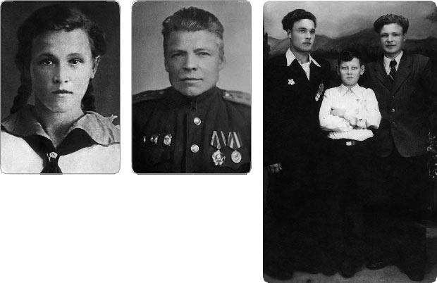 Сергей и его семья: мама, Зоя Есперовна Иванова, в юности, папа, Виктор Сергеевич Голубков, сразу после войны, и старшие братья Леонид и Густав.