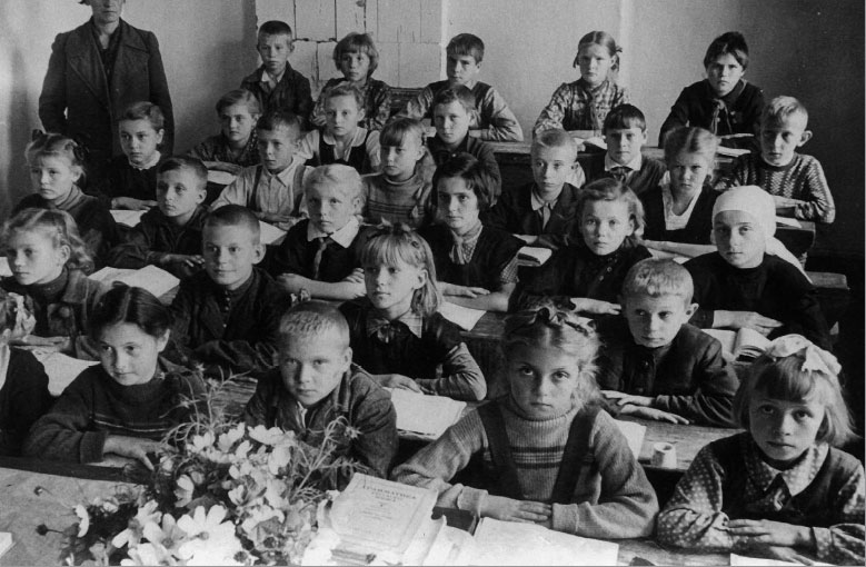 Это был 1945 год. Ещё продолжались бомбежки и гибли люди, взрослые и дети. Но уже невозможно было не учиться – школы не работали четыре года! Поэтому во вновь набранных классах собрались дети разного возраста. В моём первом классе были ребята семи лет, как я, а были и десятилетние. В классе учились и мальчики, и девочки – раздельное обучение практиковали в те годы только в крупных городах, и были представлены четыре национальности: белорусы, русские, поляки и евреи. Поразительно, но представительство было равным – по семь человек. Одним словом, ситуация оказалась сложная, надо было как-то самоутверждаться и становиться героем. И у меня это получилось. Наверное, потому, что мне до всего было дело, равнодушием я не страдал.