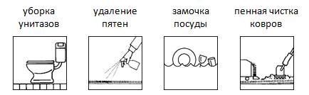 – средства для уборки в быту, не предназначены для уборки больших объектов со специфическими загрязнениями и поверхностями