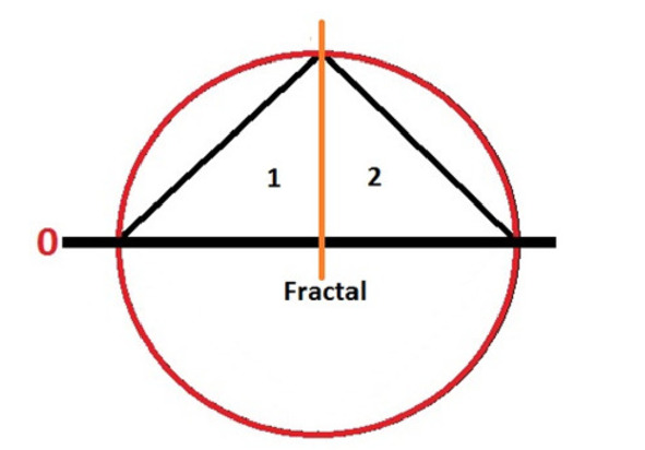 From the example above, we can see that a fractal is nothing but a vibration cycle where the left part (1) is similar to the right (2).