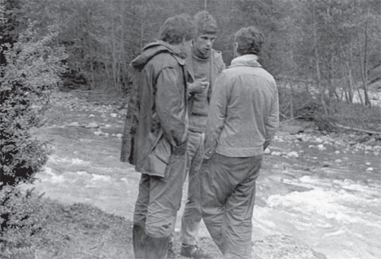 С. Киреев (в центре), 1978, река Кодори (Абхазия)