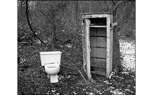 – А чё-то у тебя сортир так покосился? Упадёт будка-то лицом вниз – не выберешься!