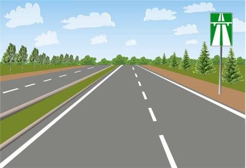 «Автомагистраль» – дорога, обозначенная знаком 5.12 и имеющая для каждого направления движения проезжие части, отделенные друг от друга разделительной полосой (а при ее отсутствии – дорожным ограждением), без пересечений в одном уровне с другими дорогами, железнодорожными или трамвайными путями, пешеходными или велосипедными дорожками.