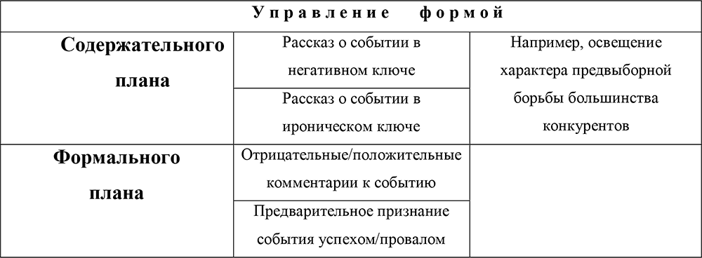 – формального плана, когда перед событием или после него вклинивается автономная его оценка. Заранее даваемая, она начинает предопределять оценку, которую вынесет событию массовое сознание. Этим аспектом грешат социологические опросы в период окончания избирательных компаний, заранее отдавая голоса сомневающихся конкретному кандидату.