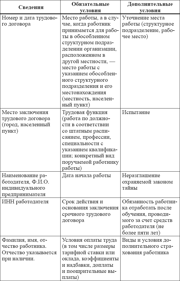 Содержание трудового договора определено ст. 57 ТК РФ.