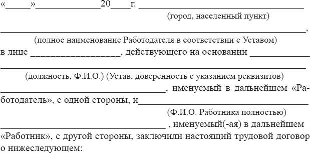 Для других категорий работников унифицированных форм трудовых договоров нет, и форма трудового договора может быть разработана в организации самостоятельно с учетом ее специфики и требований ст. 57 ТК РФ.