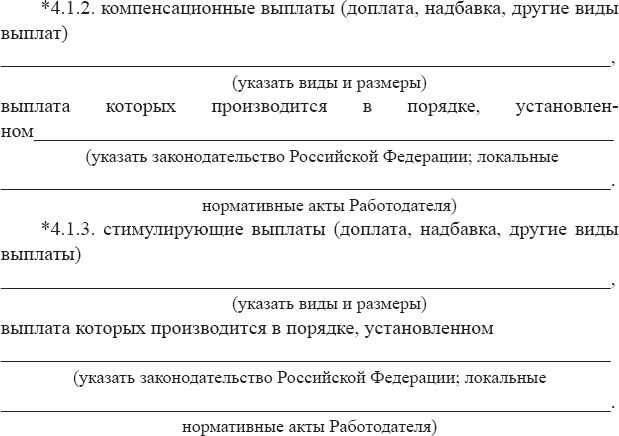 4.1.1. должностной оклад (оклад), ставка заработной платы в размере _________________________ в месяц или в размере, определенным отдельным соглашением;