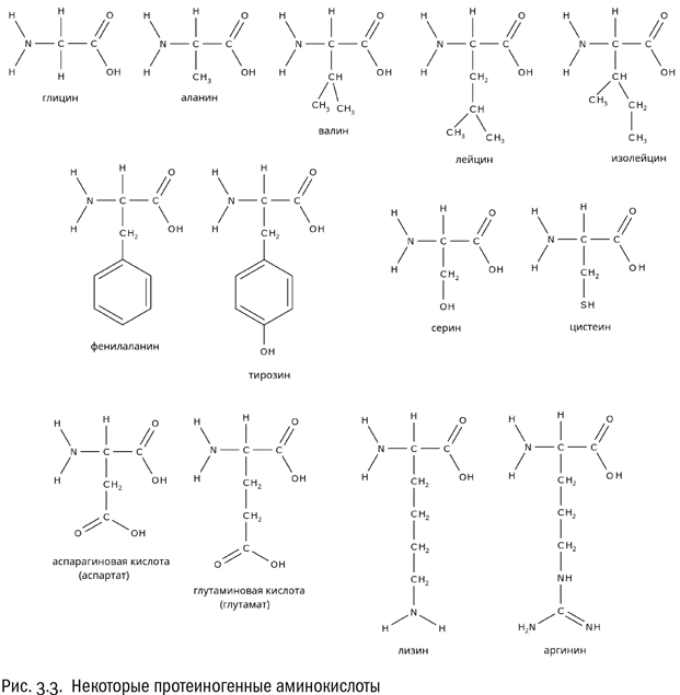 Таким образом, аминокислоты, из которых состоят белки, можно поделить на четыре категории: гидрофобные, гидрофильные нейтральные, положительно заряженные и отрицательно заряженные. Разумеется, все эти различия касаются только той части молекулы аминокислоты, которую мы назвали радикалом (R). “Базовая” часть (включающая атом углерода, атом водорода, карбоксильную группу и аминогруппу) во всех рассмотренных нами протеиногенных аминокислотах одна и та же. Особое положение занимает разве что самая простая из всех возможных аминокислот – глицин, у которого вместо радикала атом водорода.