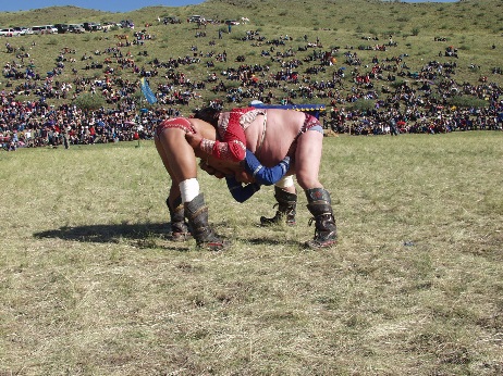 2. В неписанном ритуале встряхивание пыли с побежденного борца» отражается желание прийти на помощь любому, кто в этом нуждается, уважение и соблюдение традиций своих предков. После каждой схватки победитель помогает встать побежденному борцу и встряхивает пыль с него. Таким образом, поднимает его настроение и вдохновляет на новые свершения. Побежденный в знак признания своего поражения развязывает шнур содака и проходит под его поднятую руку.