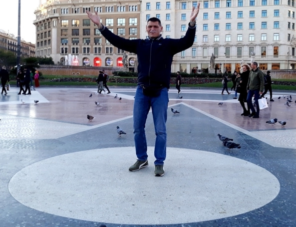 Для того, чтобы в полной мере ощутить, что вы находитесь в исходной точке планеты, в начале всех начал и средоточии всех смыслов, рекомендую пройти в самый центр площади Каталонии (он специально отмечен мраморным кругом), разместить в нем свое прекрасное тело – и оказаться в состоянии нирваны, в каком явно пребывает странный человек с сигаретой на фото: