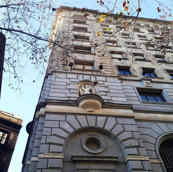 Вот такая печальная судьба Ангела-Хранителя Барселоны. Но если мы думаем, что он безвовратно сгорел в жестоком пламени Гражданской войны – мы ошибаемся. Поискав как следует, мы все-таки найдем его – высоко-высоко, в нише огромного здания Банка Испании, на все той же улице Портал Ангела.