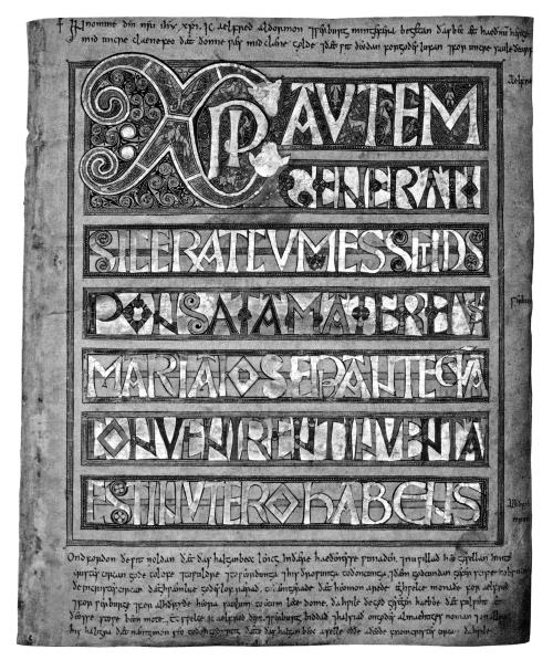 Богато украшенная страница из латинской рукописной копии Евангелия от Матфея из Кентербери (известная как «Codex Aureus»), на которой хорошо видны заметки на староанглийском языке, сделанные в начале и в конце страницы. У викингов существовало много способов обогащения, в частности, немалые деньги можно было получить в порядке выкупа. На полях роскошной, богато иллюстрированной копии четырех Евангелий (на фото), выполненной английскими монахами в Кентербери, была обнаружена надпись, которую по стилю и почерку можно отнести к англосаксонской письменности IX в.; она гласит: «Я, граф Альфред, и Верберг, моя супруга, выкупили эту книгу у орд язычников за собственные деньги, уплатив им чистым золотом, свершив сей поступок во имя любви к Господу нашему и во спасение наших душ, а равно и потому, что мерзко было нам оставлять сию священную книгу в непотребных руках».