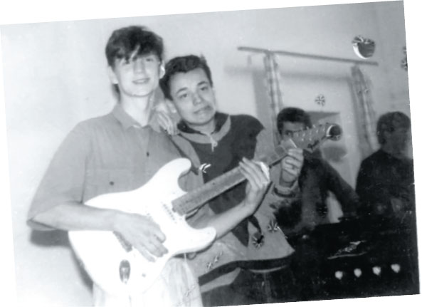 В ДК «Строитель» я прямо с порога спросил: «Где можно прослушаться в музыкальную группу?» Меня направили куда-то вглубь здания, буквально в «каморку, что за актовым залом». Когда я вошел, замер от удивления. Никогда не забуду тот запах пыли, портвейна, сигарет и едкого перегара… Это был совершенно другой мир: на стенах – плакаты, некоторые даже с автографами, на стойках – клавишные инструменты, рядом – гитары, среди которых я узнал легендарный Fender Stratocaster[1]. Раньше все это я видел только на картинках!