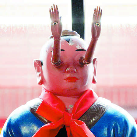 О некоторой степени «буддизации» образа говорит веер, на котором начертан список из девяти буддийских адов, и цветок лотоса, символ буддизма, на схеме обозначающий сердце, легкие, печень и желчный пузырь.