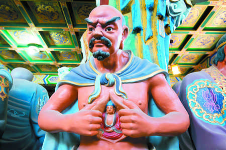 Влияние, впрочем, было обоюдным: буддийские монахи переходили в даосские монастыри и писали там трактаты об алхимии; в китайских храмах одни архаты держат в руках символ инь-ян, другие носят бороды, подобно даосским монахам, третьи тянутся правой рукой, превосходящей по длине левую в три раза, в море – за энергией инь, и на небо – в поисках ян. Архат по имени Та Сян раскрывает свое сердце, являя Будду: абсолютно так же даосы изображали выращивание эмбриона внутри тела медитирующего монаха.