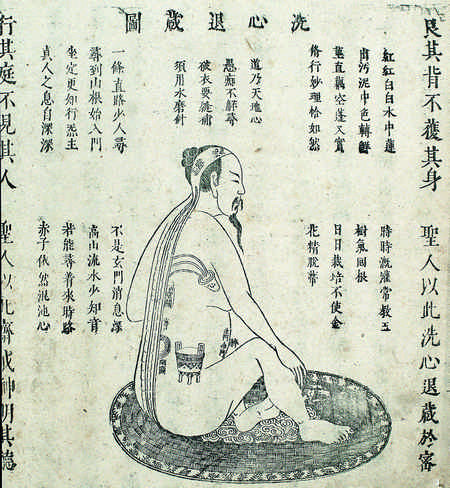 Даосизм перенимал знания не только у буддизма. Синкретизм трех основных религий Китая – буддизма, даосизма и конфуцианства (и по сей день проявляющийся в народной религии, т. н. шэнизме, смешивающем все существующие культы в единую систему) – влиял не только на теологию, но и на алхимические практики. В трактате XVI в. «Указания о значении людской природы и продолжительности жизни», компендиуме знаний о внутренней, «физиологической» алхимии, появляется гравюра, на которой изображены трое медитирующих вместе мудрецов: это Конфуций, Лао Цзы и буддийский бодхисаттва Дхарани. Впрочем, между тремя религиозными системами имелись и существенные разногласия, например, во взглядах на половые отношения. Конфуцианские этические принципы не допускали свобод в сексуальном поведении, а буддийское стремление к абсолютной исключенности из материального мира не позволяло отводить плотской любви хоть сколько-нибудь значимую роль в духовной жизни человека.