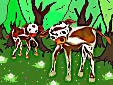 Со дня, когда Бушка познакомился с маленькой Олинкой, прошло уже целых четыре дня. И это не считая сегодняшнего. А девочка-оленёнок всё не приходила и не приходила к пастбищу, на котором паслись коровы и телята из Радужной. Нашему маленькому другу было из-за этого очень грустно, хотя он и проводил бо́льшую часть времени в играх со своими сверстниками.