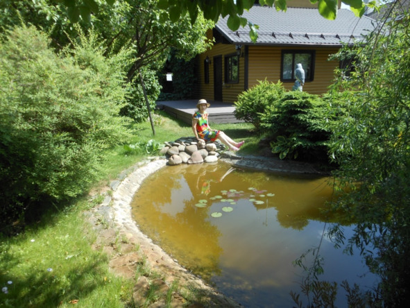 Перед прудом росли две яблони, а между ними круглый куст, весной покрывающийся белыми цветочками.