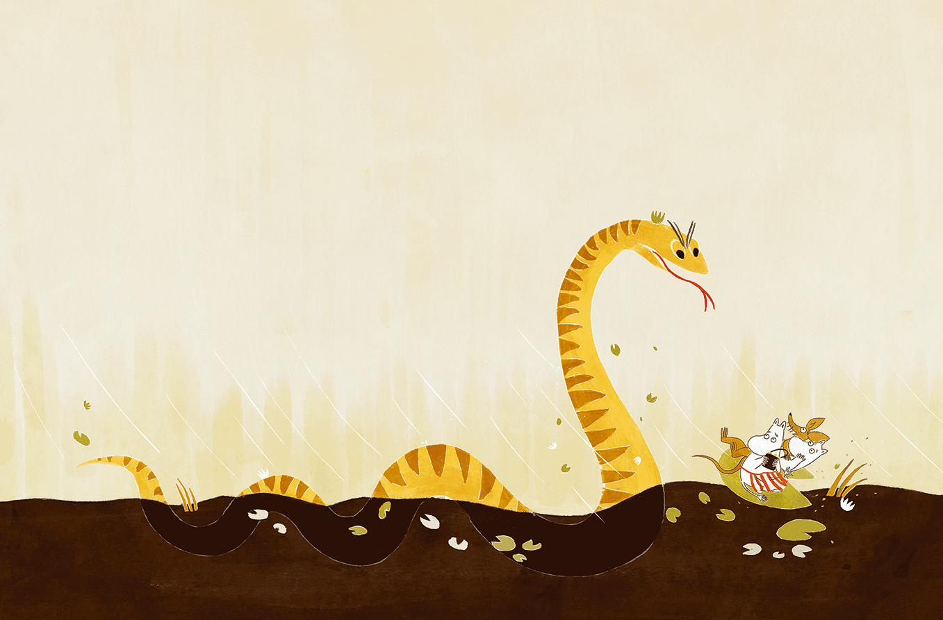 Чудовище быстро их догнало и разинуло пасть с длинным дрожащим языком. Муми-тролль закрыл глаза лапами и ждал: вот сейчас его съедят.