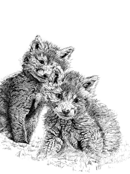 Мать швырнула выхухоль детям, и они набросились на неё. Они дёргали и таскали зверька, рыча и страшно тараща глазёнки друг на друга, и каждый отчаянно тряс головой, стараясь урвать свою долю добычи.