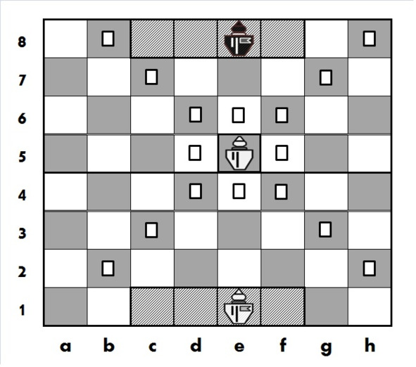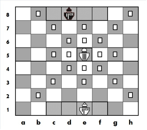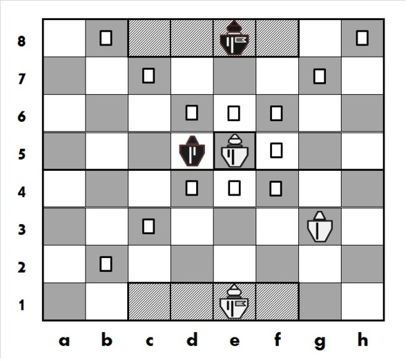 В позиции на рисунке 2.8. показаны поля, на которые может сделать ход Принц, расположенный на e5.