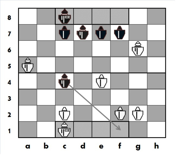 Как видно, у черного Принца на c4 есть возможность проникнуть (вторгнуться) в замок белых на поле f1, что собственно черные и делают