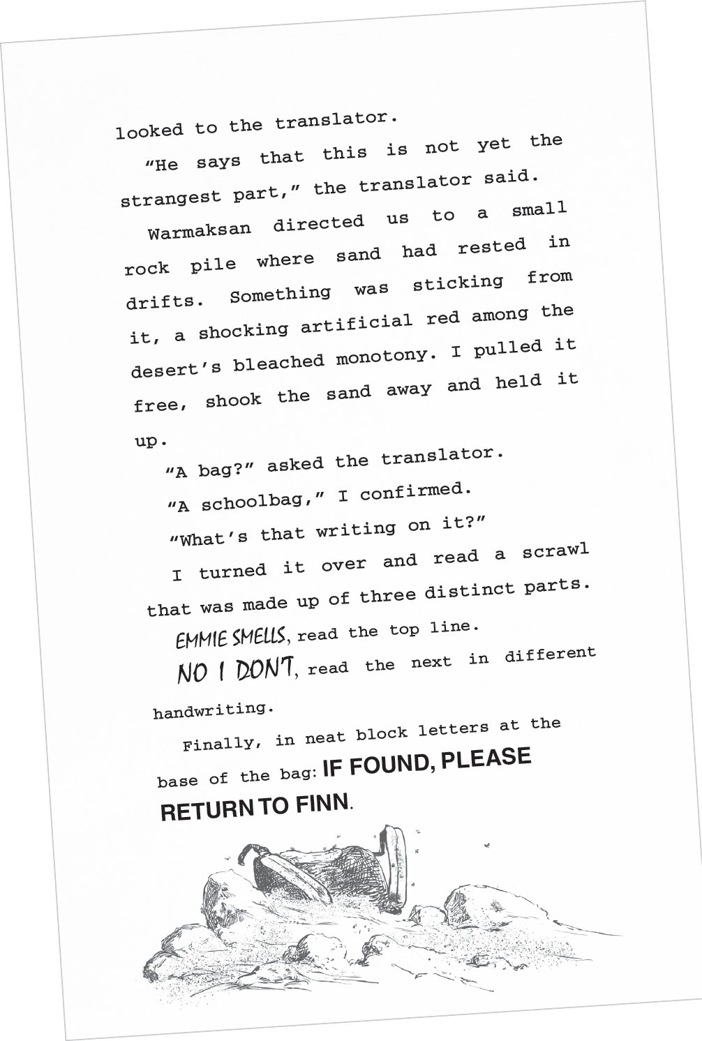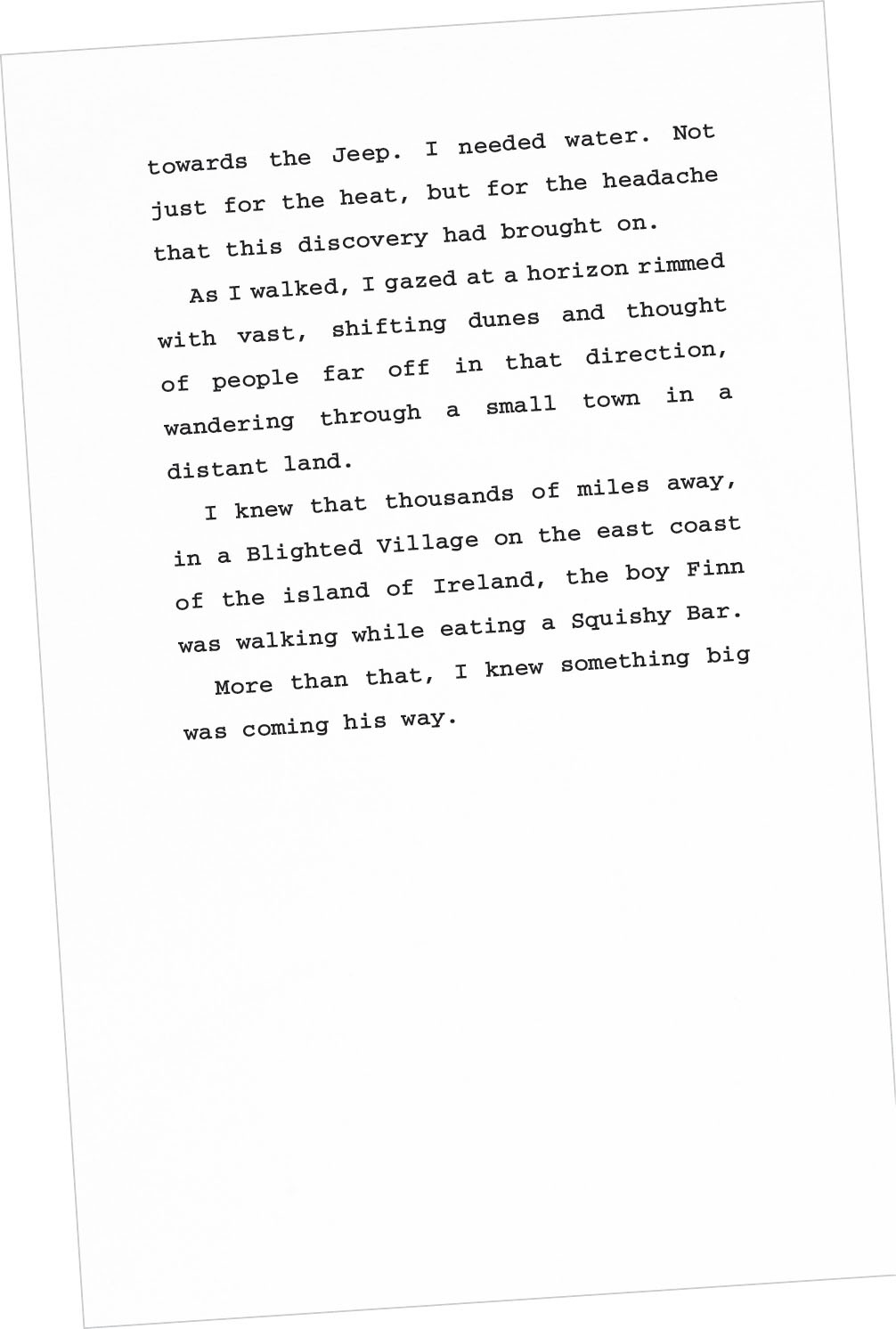 They crept into the open again, carefully at first, presuming they’d see the assistants’ heads over the crest of the land. But there was no sign. They moved past a couple more lopsided trees, towards where they had last seen them, and Finn noticed a patch of ground that looked out of place, like a wig on a bald head.