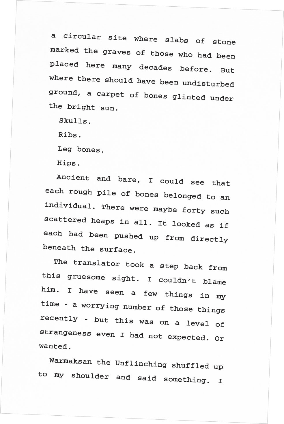 “You know the writer for The Most Great Lives is due to visit?” he said to Finn. The Most Great Lives of the Legend Hunters, from Ancient Times to the Modern Day was the most prestigious, popular and long encyclopaedia. Its publishers had waited years for Finn to become a proper Legend Hunter so they could print, and sell, a new version.