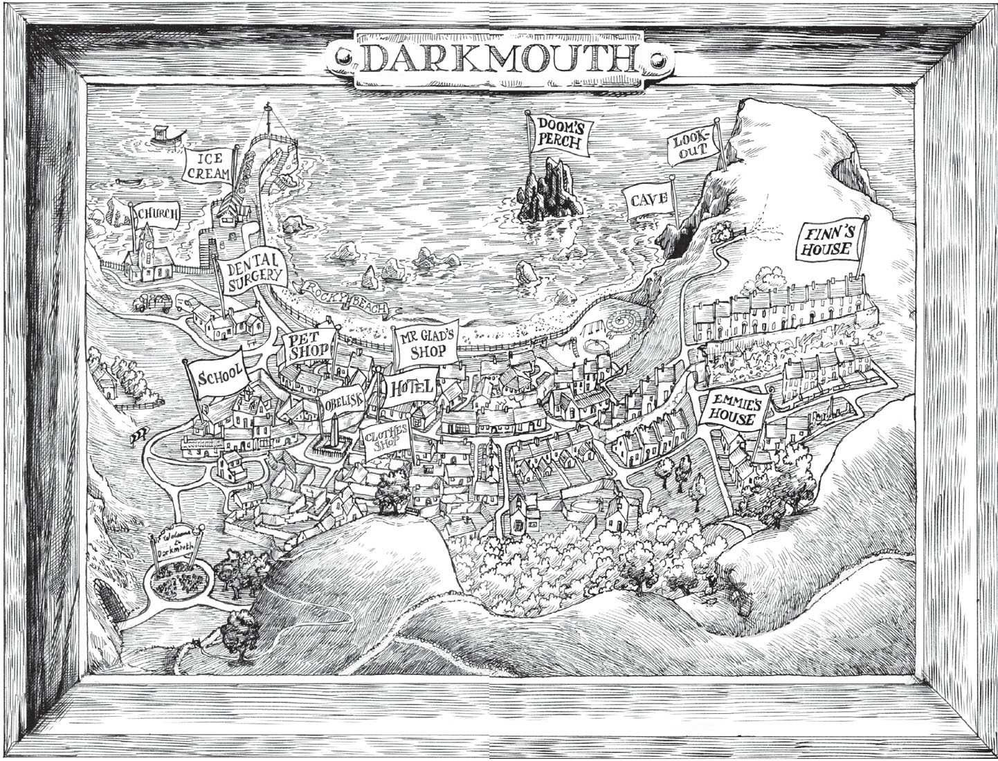 Using his local advantage over the assistants, Finn ducked into the laneways that criss-crossed Darkmouth. He knew that if he dipped in at Scrapers Lane there would be a shortcut to Red Alley. And if he nipped into the gap between two houses off Red Alley it would bring him to Stump Street, which in turn would allow him a quick route to Limpers Rock.