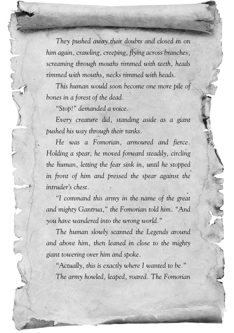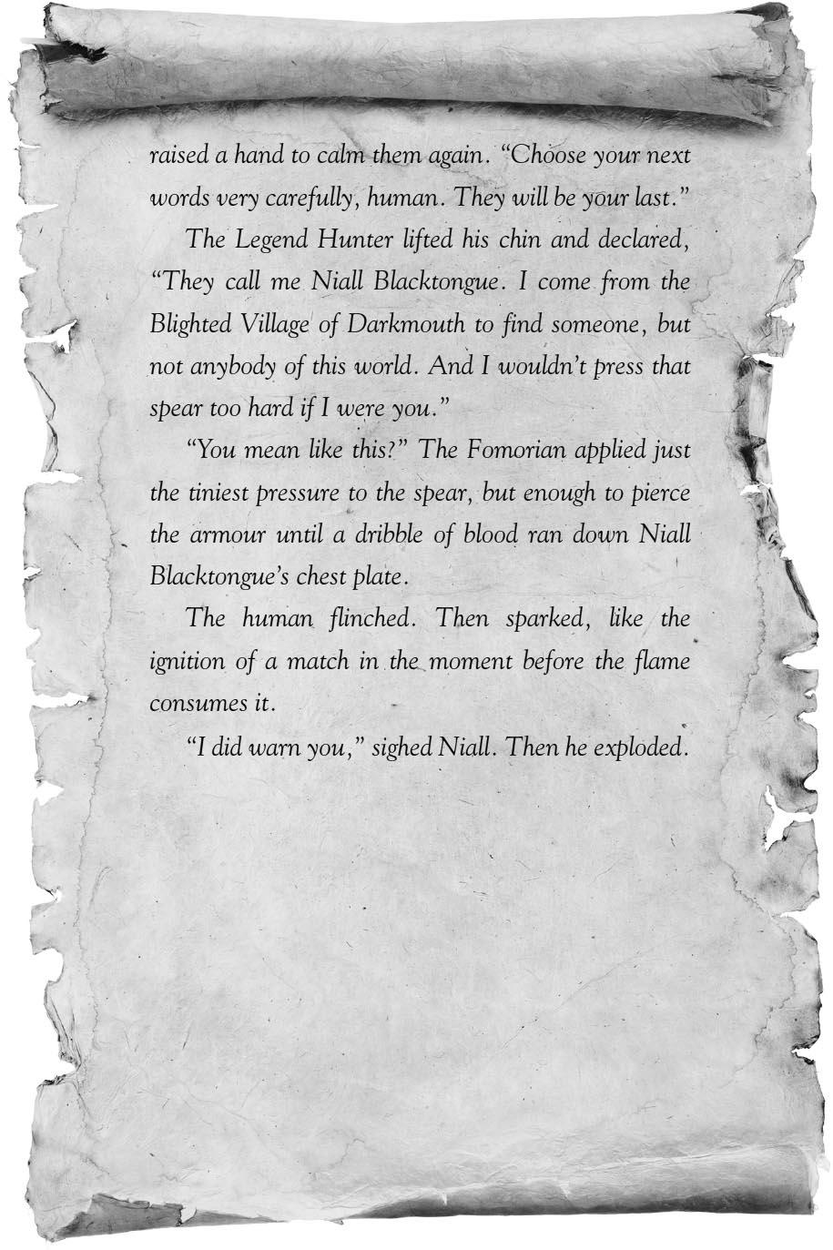 Then he’d pushed Finn out of the Infested Side, back through the buckling gateway to their own world and safety. Finn’s dad had gone to the Infested Side to rescue Finn’s mam, and Finn had gone there to rescue both of them. The last time he saw his dad, he was stepping towards the onrushing Legends and the human who led the charge – Hugo’s own father, Niall Blacktongue.