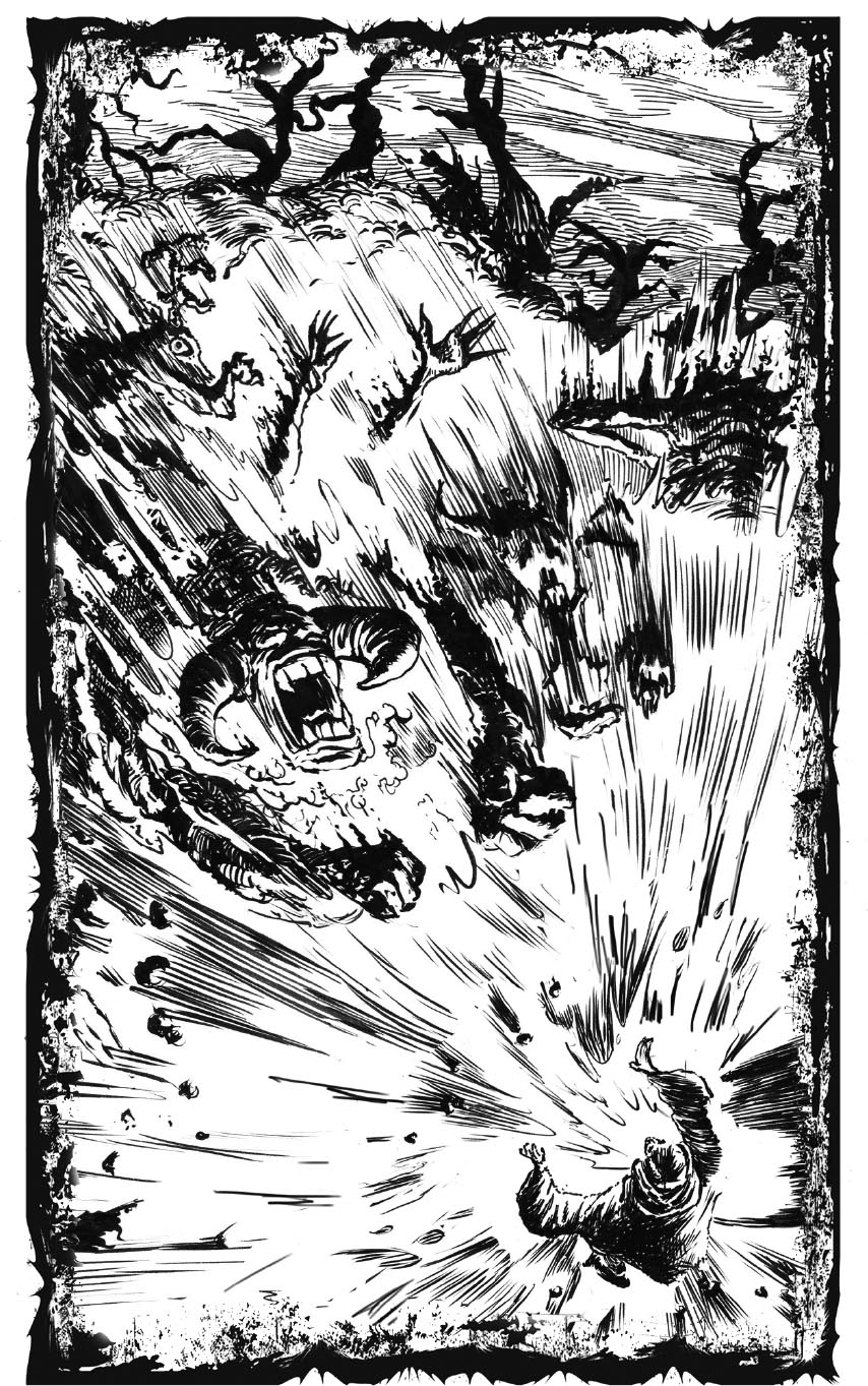 He backed along a wall, the armour of his clattering fighting suit screeching across the stone. Keeping out of sight, he took a hard right into another alleyway of high glass and nail-rimmed walls in a town built for defence. Gouges and missing chunks in the brickwork were a reminder of the invasion only two weeks before, of the chaos and near catastrophe wrought by multiple Manticores, a Minotaur and those trying to hunt them down.