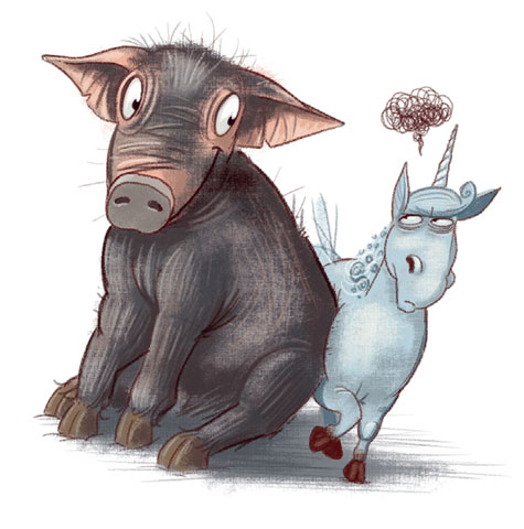 Страшнее всего было не колдовство, которым принц превратил Финтифлюшу, младшего брата Фью, в огромного крылатого монстра, а ни в чём не повинного поросёнка – в гигантскую свинью-ищейку единорогов. Эликсир хорошего поведения, от которого жертвы принца превращались в безвольных рабов – вот чего жутко боялся Курт. Как же помочь Финтифлюше и поросёнку? Как, как, как?