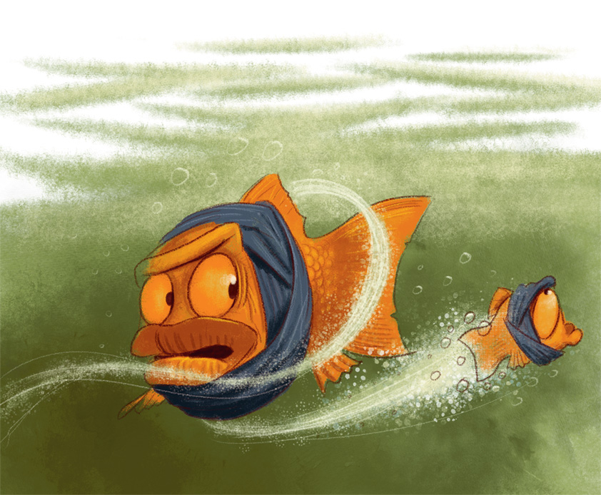 Не успела маленькая рыбка-ниндзя шлёпнуться в воду, как за ней выскочила вторая, гораздо больше и намного круглее, и строгим тоном забулькала: