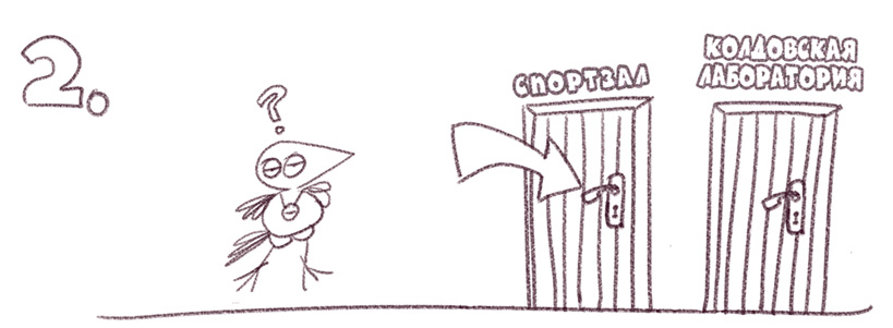 Пункт назначения Фью – спортзал Его Высочества! Зал расположен рядом с колдовской лабораторией.