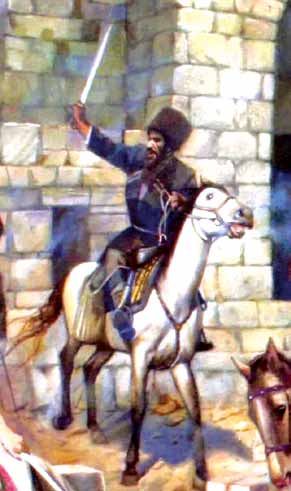 Драгоценную джику властителя Ибрагим-хан оставил во дворце, чтобы случайно не потерять в походе, а сам облачился в шлем и доспехи из позолоченной стали.