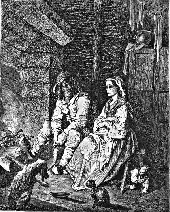 Однажды вечером, когда дети улеглись спать и дровосек присел у огонька со своей женой, сердце у него сжалось от горя и он сказал ей: