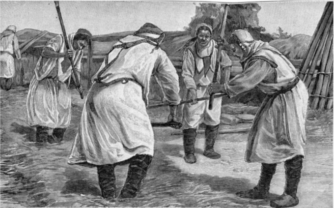 Проведя день среди черемисов – язычников, вечером мы отправились обратно в Казань. Духота сменилась приятной прохладой. С каким удовольствием мы быстрым аллюром неслись по полям в «плетенках», запряженных великолепными русскими лошадьми! Под мягкое покачивание повозок мы незаметно погрузились в сон и проснулись лишь на рассвете, когда подъезжали к Казани. Подернутые легкой утренней дымкой, сверкающие купола и разноцветные колокольни словно плыли по воздуху: казалось, что мы попали в сказочный мир.
