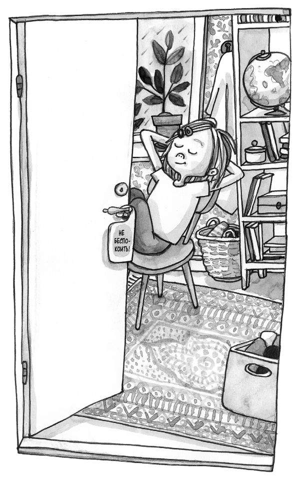 Хорошо иметь свою собственную комнату! Наконец-то у меня появилось спокойное местечко – только моё и ничьё больше. Здесь я сама решаю – закрыть дверь или нет. Чаще – лучше закрыть. На дверную ручку я повесила такую бумажную висюльку, как в гостиницах с надписью «Не беспокоить!». Иногда я её поворачиваю другой стороной, где написано: «Пожалуйста, уберите мою комнату!» Но тогда мама говорит, что свою комнату я должна убирать сама.