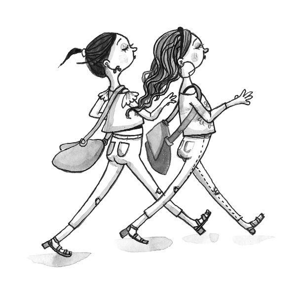 Мы немного опаздывали, и я прибавила шагу, но Марьям не могла идти быстро. На ней были узкие белые джинсы и золотые босоножки на высоченных каблуках, и ей приходилось семенить. А я была в джинсовой куртке и новеньких баскетбольных кедах, которые папа привёз из Америки, так что мы совсем друг на друга не были похожи.