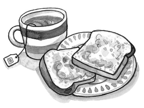 Папа открыл дверь и вошёл. Он принёс поднос с чашкой чая и двумя горячими тостами.