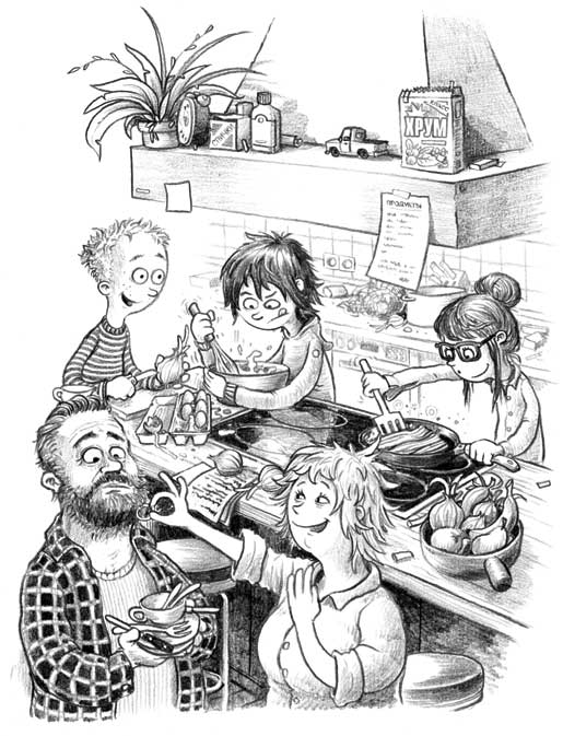 Трое друзей уныло замолкли. Немо достал из коробки яйцо и уже хотел разбить его о край сковороды, когда в кухню вошли его родители.