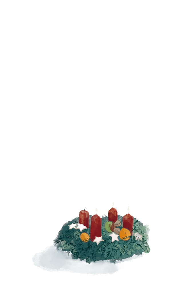 Да, мы живём в большом доме. И сразу за домом начинается лес. И в это время года на большой ели перед домом у нас всегда горят маленькие огоньки. А когда идёт снег, всё это действительно выглядит, ну да, как-то по-рождественски.